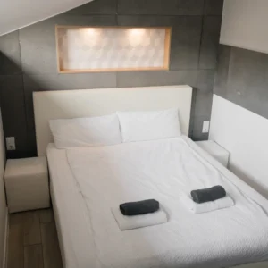 Pokoje białe to pokoje z białymi, komfortowymi małżeńskimi łóżkami. W tych pokojach mają Państwo do dyspozycji największe okna. W łazienkach, które przynależą do pokoi białych nie ma okien, są natomiast wykończone w wysokim standardzie (prysznic z deszczownicą, umywalka, toaleta). Wszystko z myślą o Państwa komforcie i wygodzie.